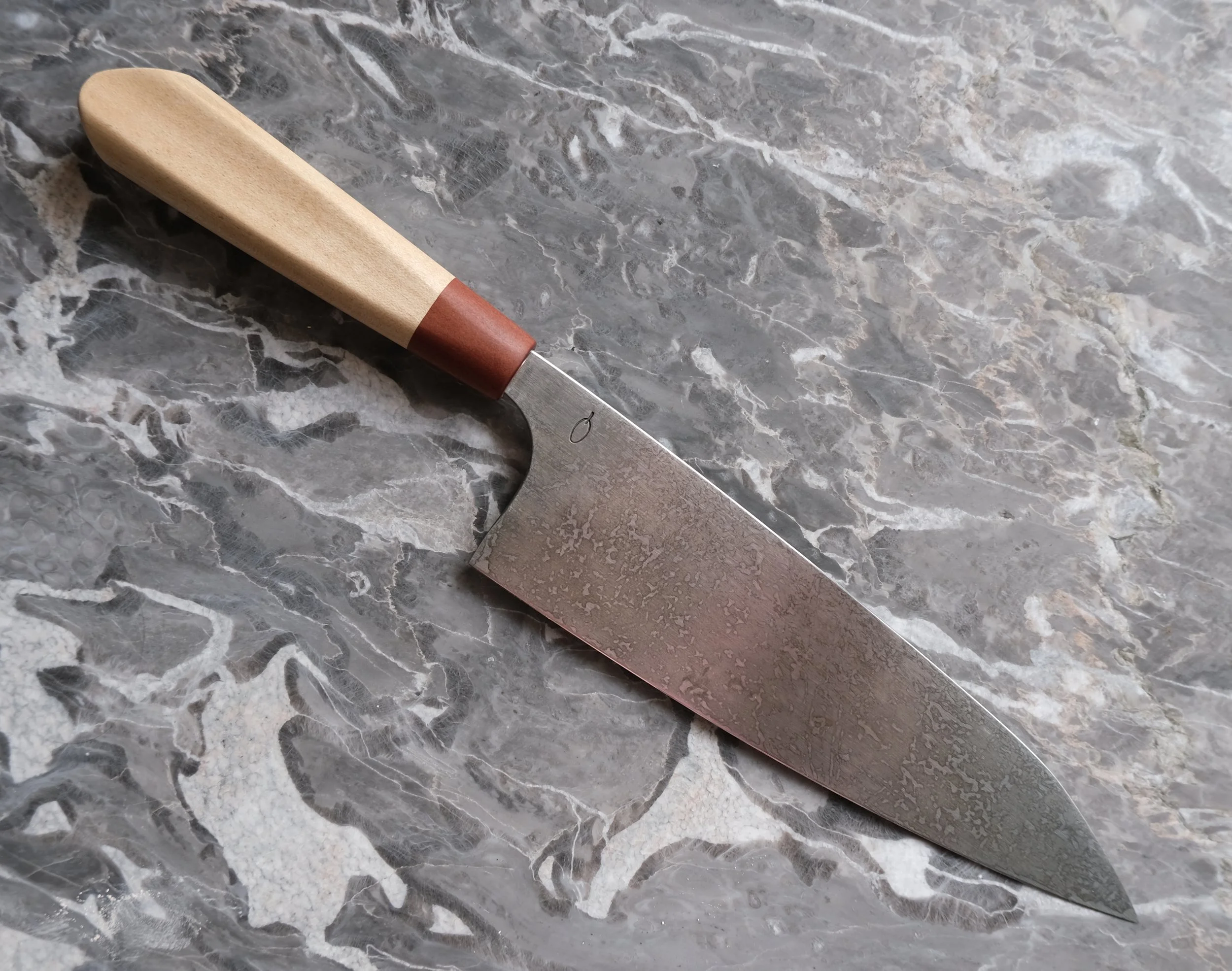 Gyuto k-tip knife with hidden tang handle